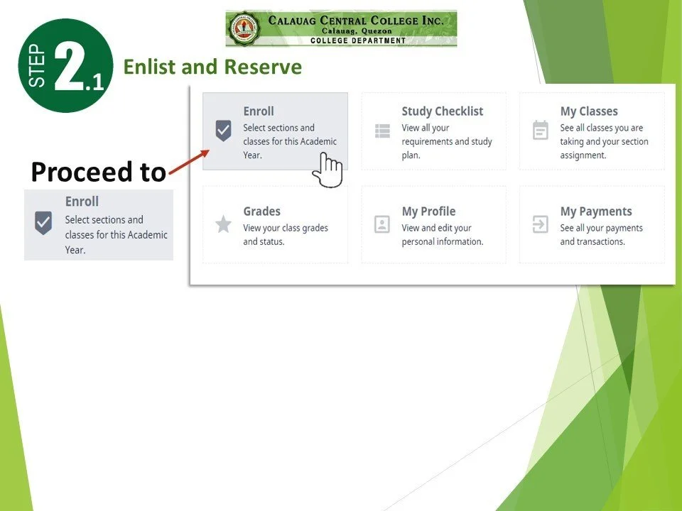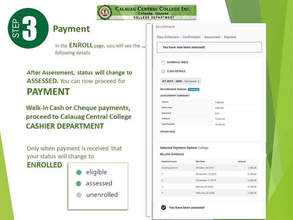 Walk-in Cash or Cheque payments, proceed to Calauag Central College Cashier Department.